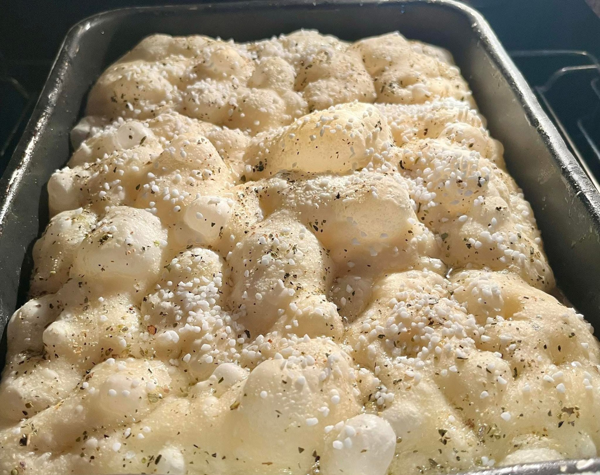 Egy csipetnyi Olaszország... Liszt, víz, vadkovász, só. Bazsalikom, oregánó, olívaolajban fürdő aszalt paradicsom, fokhagyma, olívabogyó.